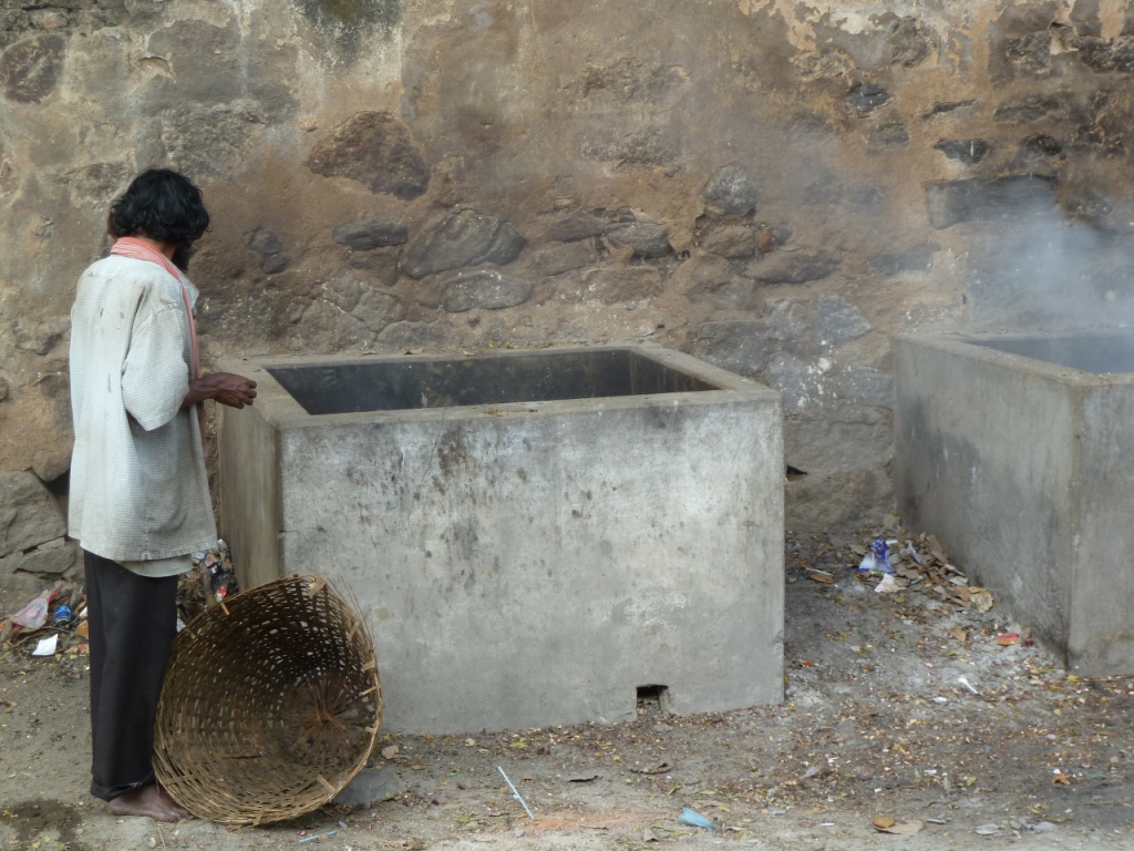 Par conséquent, personne ne s’occupe de nettoyer. D’où la crasse, omniprésente en Inde. Voici un homme chargé de ramasser et brûler les détritus, juste à côté du temple de Melkotte :