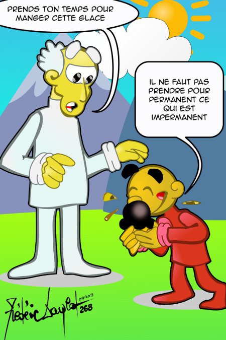 Le désir d’éviter la négation de l’ego dans la mort, le néant, et au contraire le désir d’affirmer et de protéger une identité individuelle ou collective, sa propriété, son drapeau, sa fierté, tout cela est cause de frustration. Ces projections n’ont pas le caractère fixe ni permanent que nous leur accordons (il suffit de se retrouver au chômage, d’avoir une perte de revenu, de subir un divorce, d’être obligé de vendre un bien auquel on tient pour subvenir à nos besoins, voir tout simplement de sentir en son corps l’effet de la vieillesse ou du handicap…).